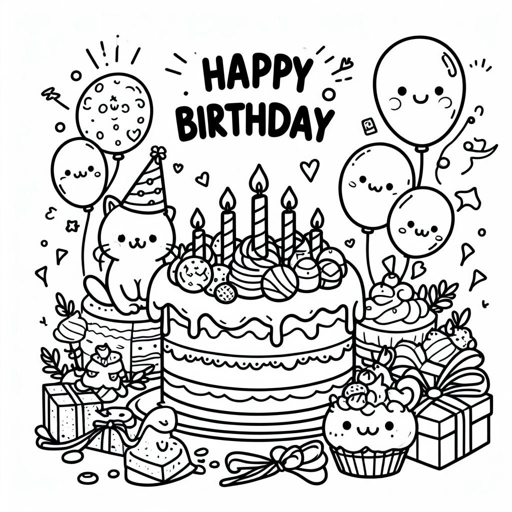 דף צביעה תמונה של מזל טוב ליום הולדת לצביעה בחינם להדפסה או צביעה אונליין