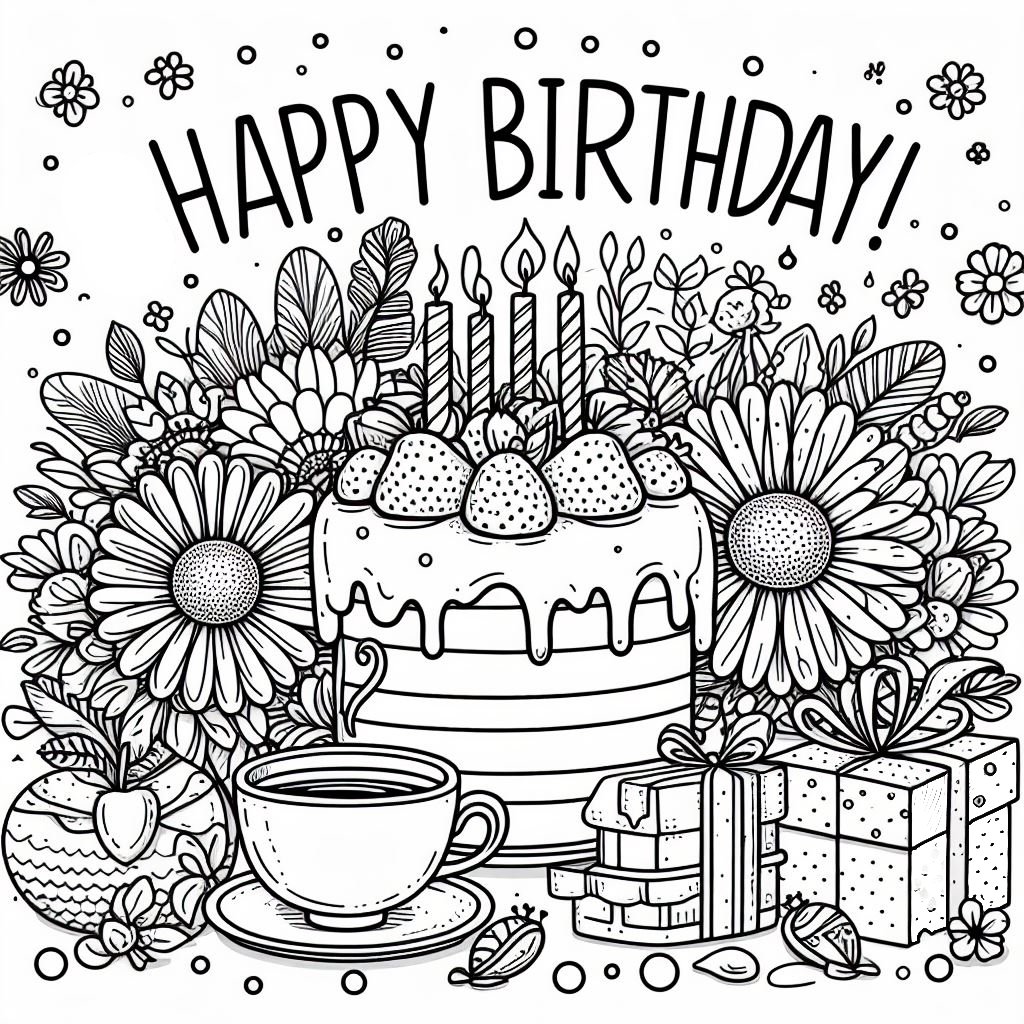 דף צביעה של יום הולדת ברכה להדפסה בחינם
