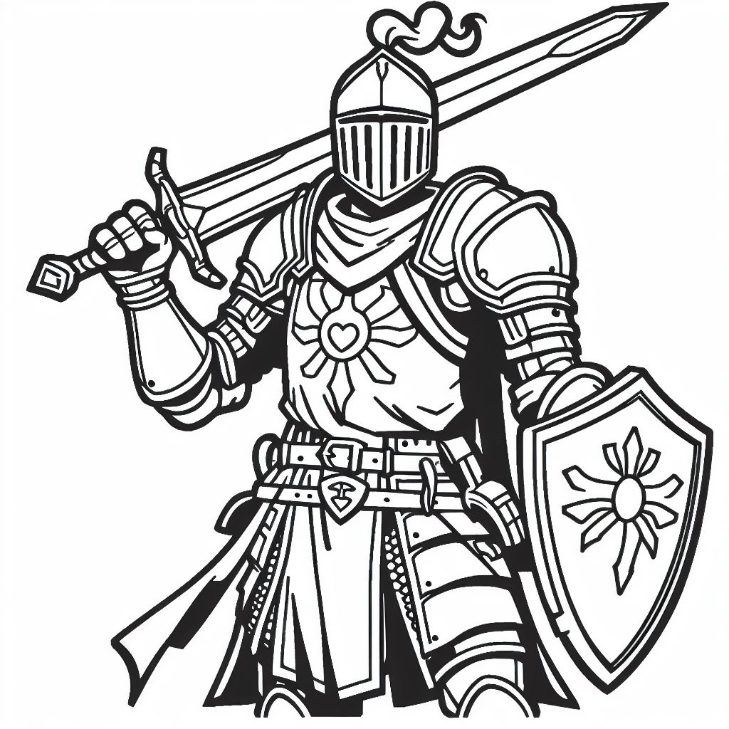 ציור של אביר עם חרב לצביעה, איור של אביר עם חרב להדפסה לצביעה לילדים