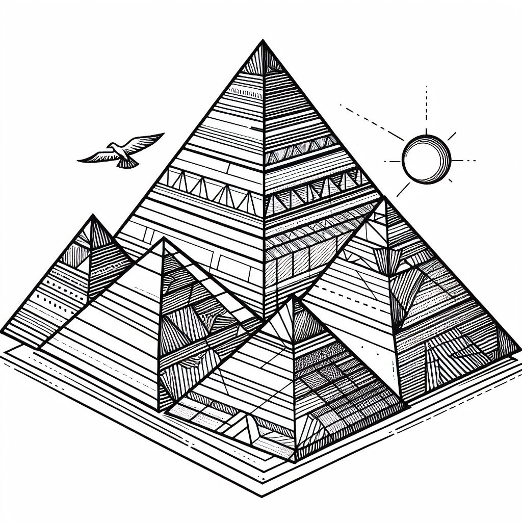 דף צביעה של פירמידות יפות להדפסה או להורדה בחינם, למחשב או לטלפון (אפשר להדפיס גם מהטלפון) ציור של פירמידות יפות לצביעה, איור של פירמידות יפות להדפסה לצביעה לילדים