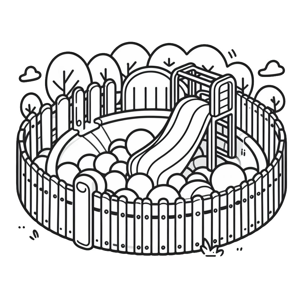 דף צביעה של בריכת כדורים מגניבה להדפסה או להורדה בחינם, למחשב או לטלפון (אפשר להדפיס גם מהטלפון) ציור של בריכת כדורים מגניבה לצביעה, איור של בריכת כדורים מגניבה להדפסה לצביעה לילדים