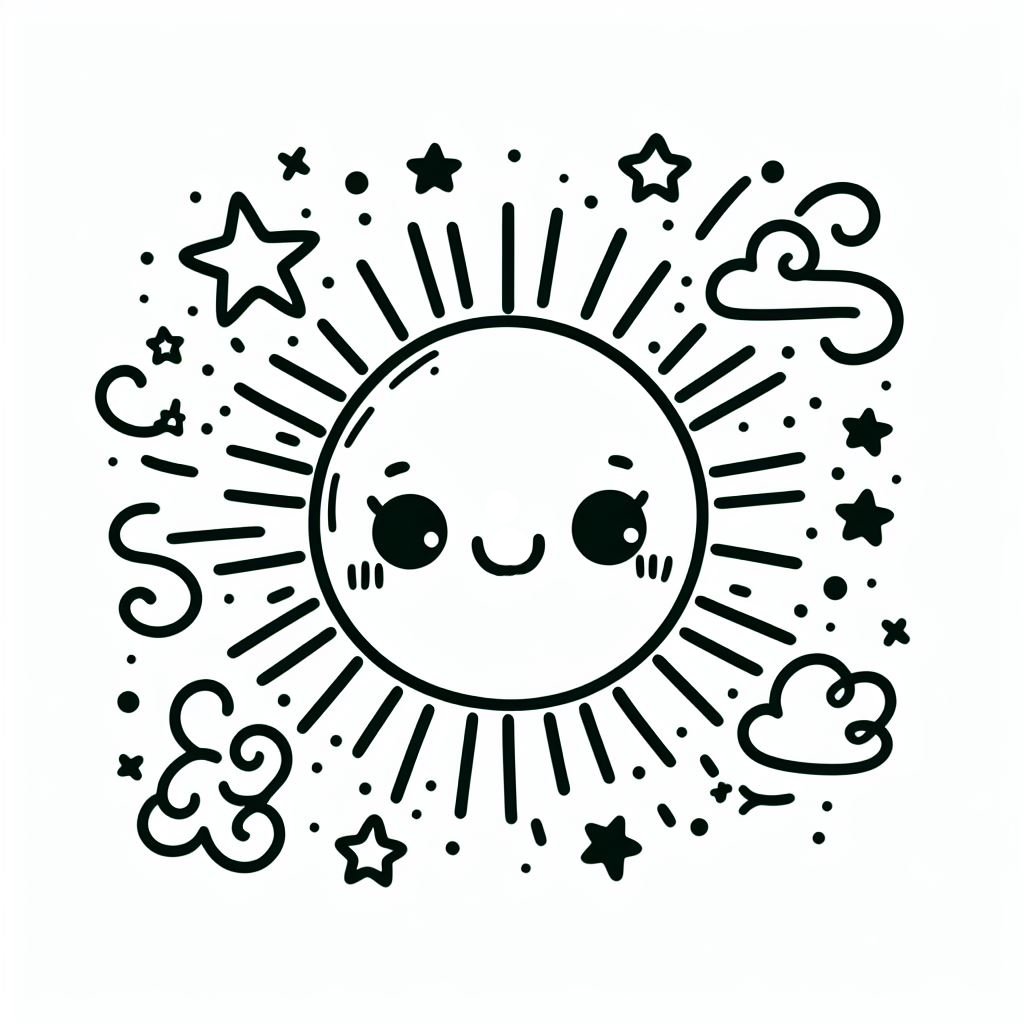 ציור של שמש לצביעה, איור של שמש להדפסה לצביעה לילדים
