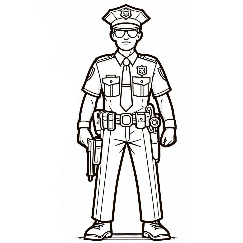 ציור של שוטר לצביעה, איור של שוטר להדפסה לצביעה לילדים