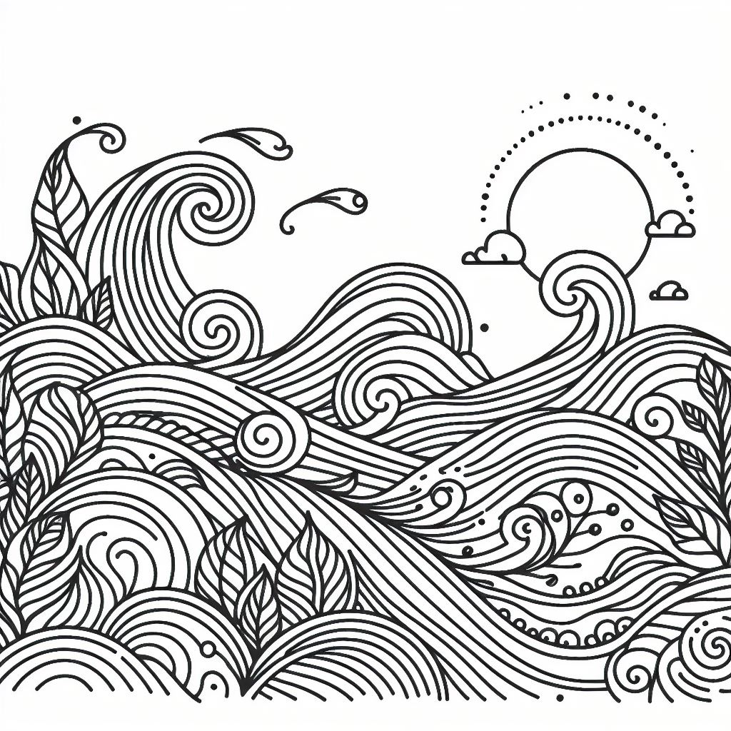 ציור של גלים לצביעה, איור של גלים להדפסה לצביעה לילדים