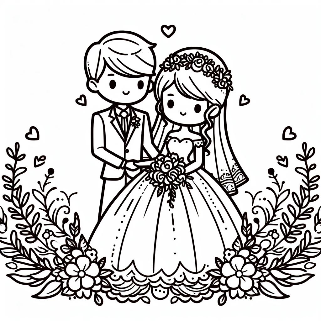 ציור של חתן וכלה לצביעה, איור של חתן וכלה להדפסה לצביעה לילדים