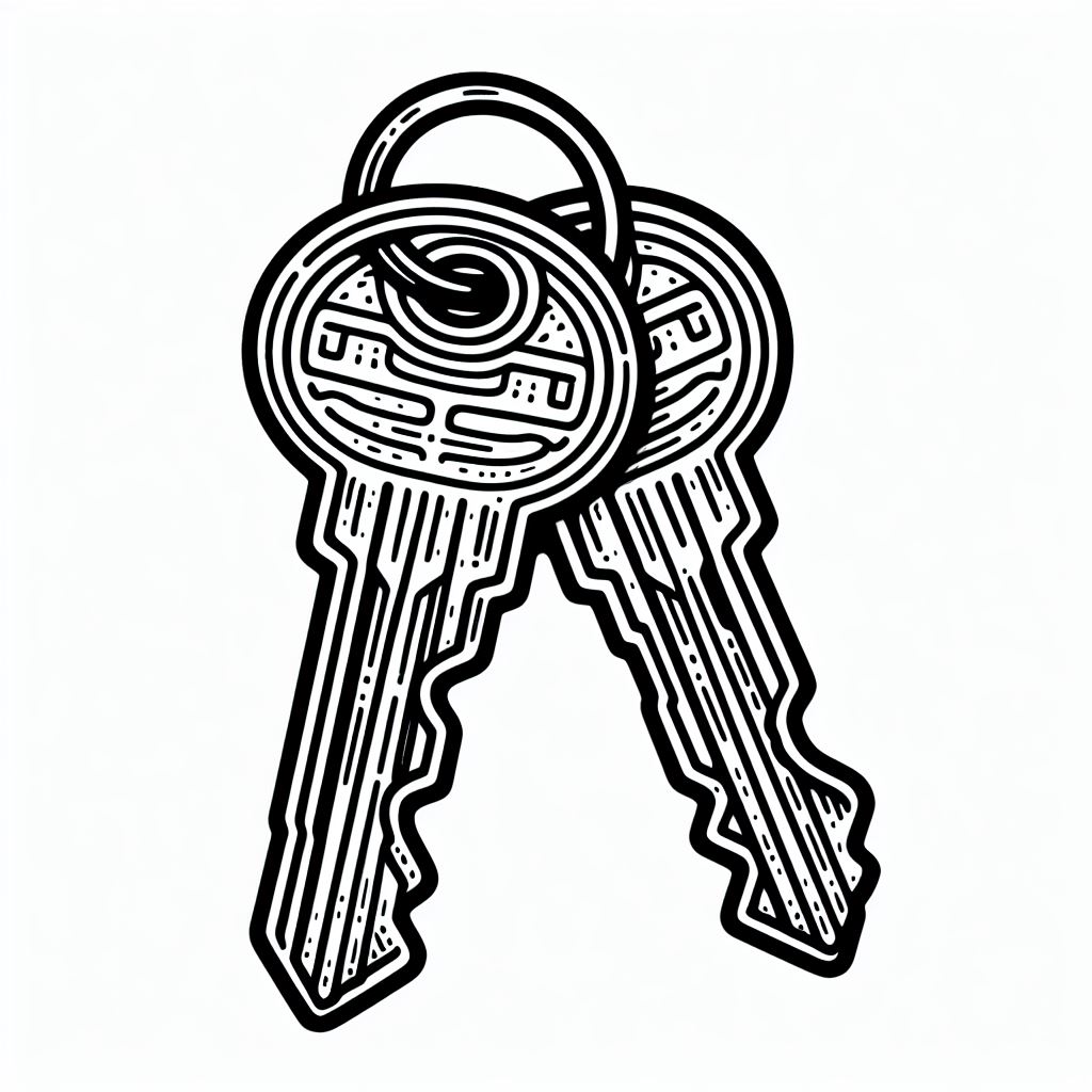 דף צביעה של מפתח - דף צביעה של מפתח להדפסה, ציור של מפתח לצביעה בחינם