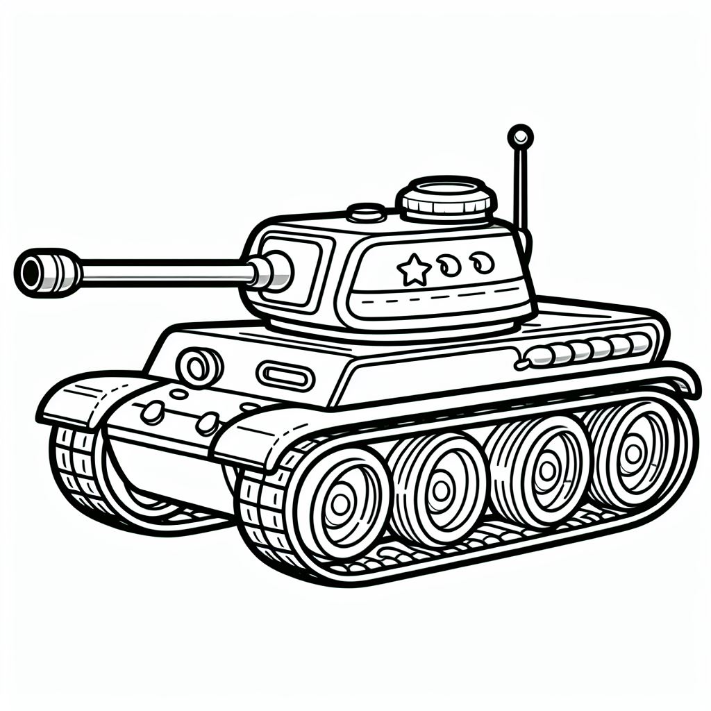 דף צביעה של טנק פשוט לילדים להדפסה בחינם