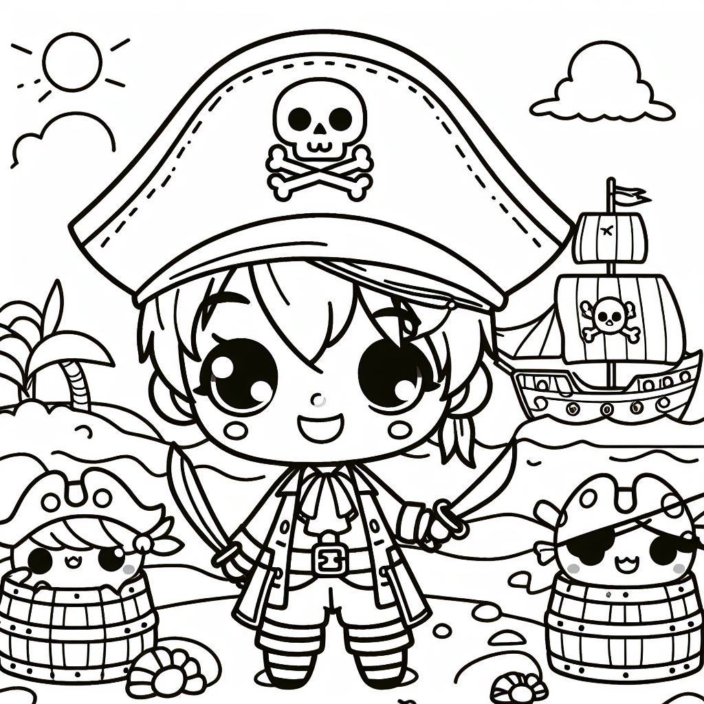 ציור של שודד ים לצביעה, איור של שודד ים להדפסה לצביעה לילדים