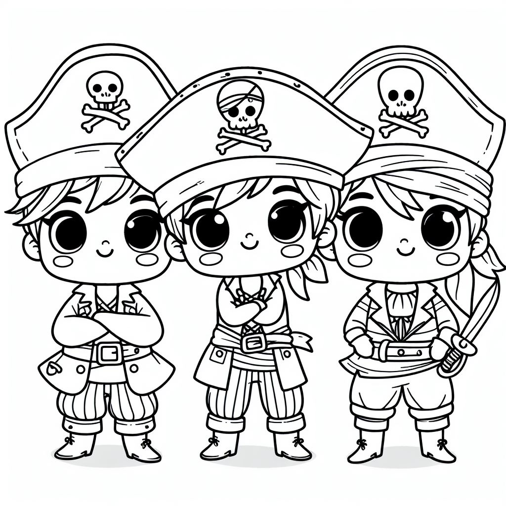 ציור של פיראטים לצביעה, איור של פיראטים להדפסה לצביעה לילדים
