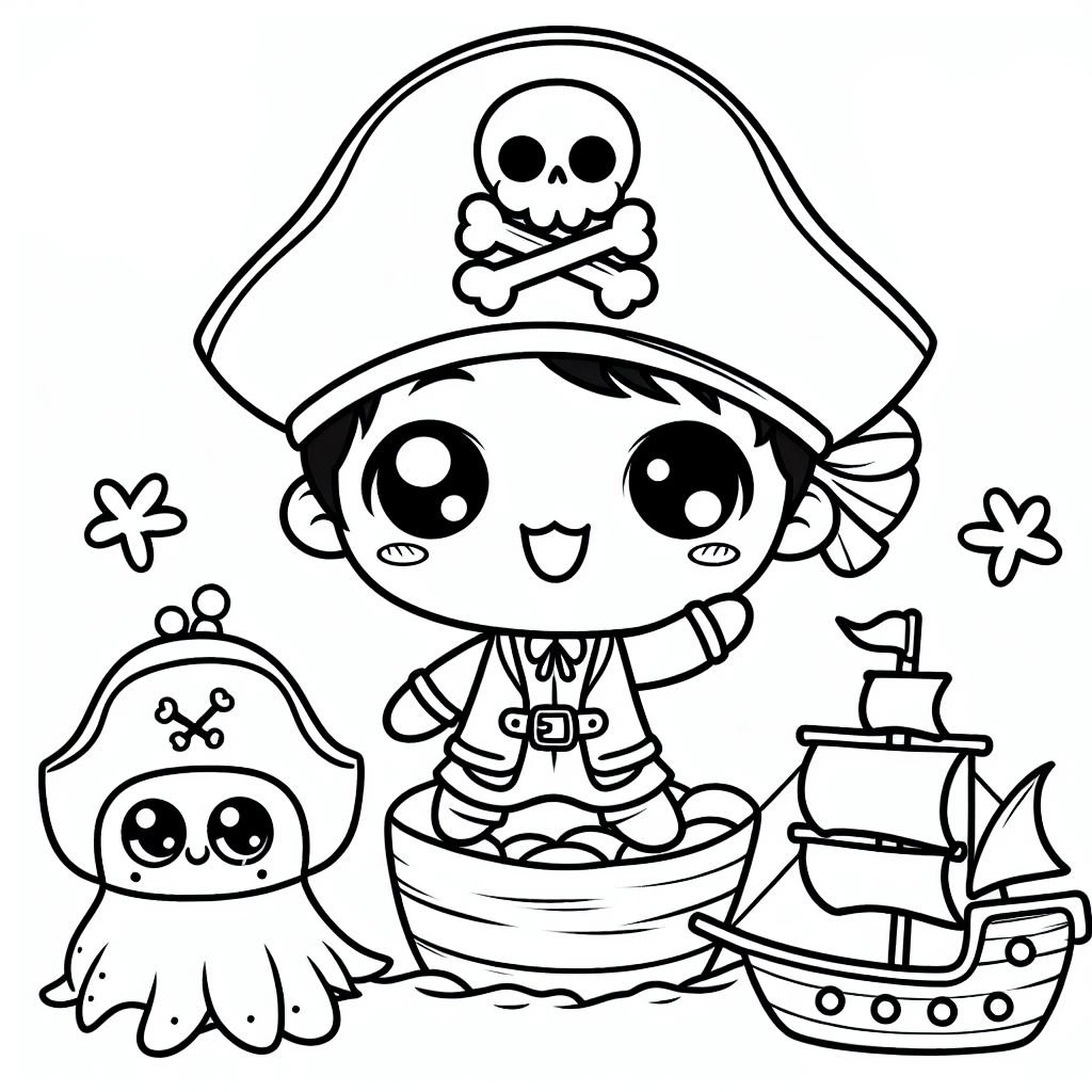 ציור של פיראט חמוד לצביעה, איור של פיראט חמוד להדפסה לצביעה לילדים