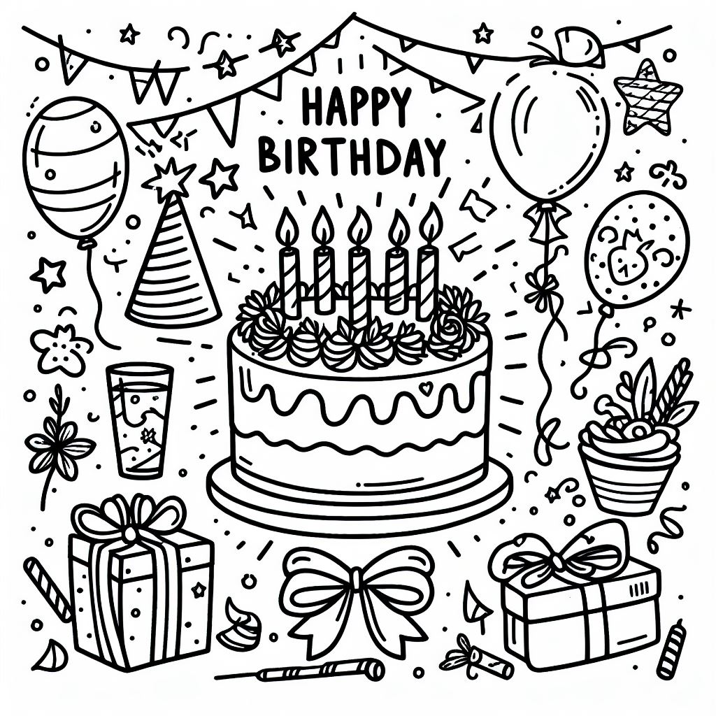 דף צביעה של יום הולדת לסבא וסבתא להדפסה או להורדה בחינם, למחשב או לטלפון (אפשר להדפיס גם מהטלפון) ציור של יום הולדת לסבא וסבתא לצביעה, איור של יום הולדת לסבא וסבתא להדפסה לצביעה לילדים