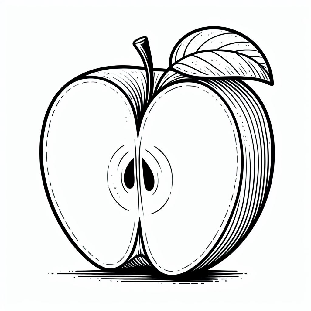 ציור של חצי תפוח לצביעה, איור של חצי תפוח להדפסה לצביעה לילדים