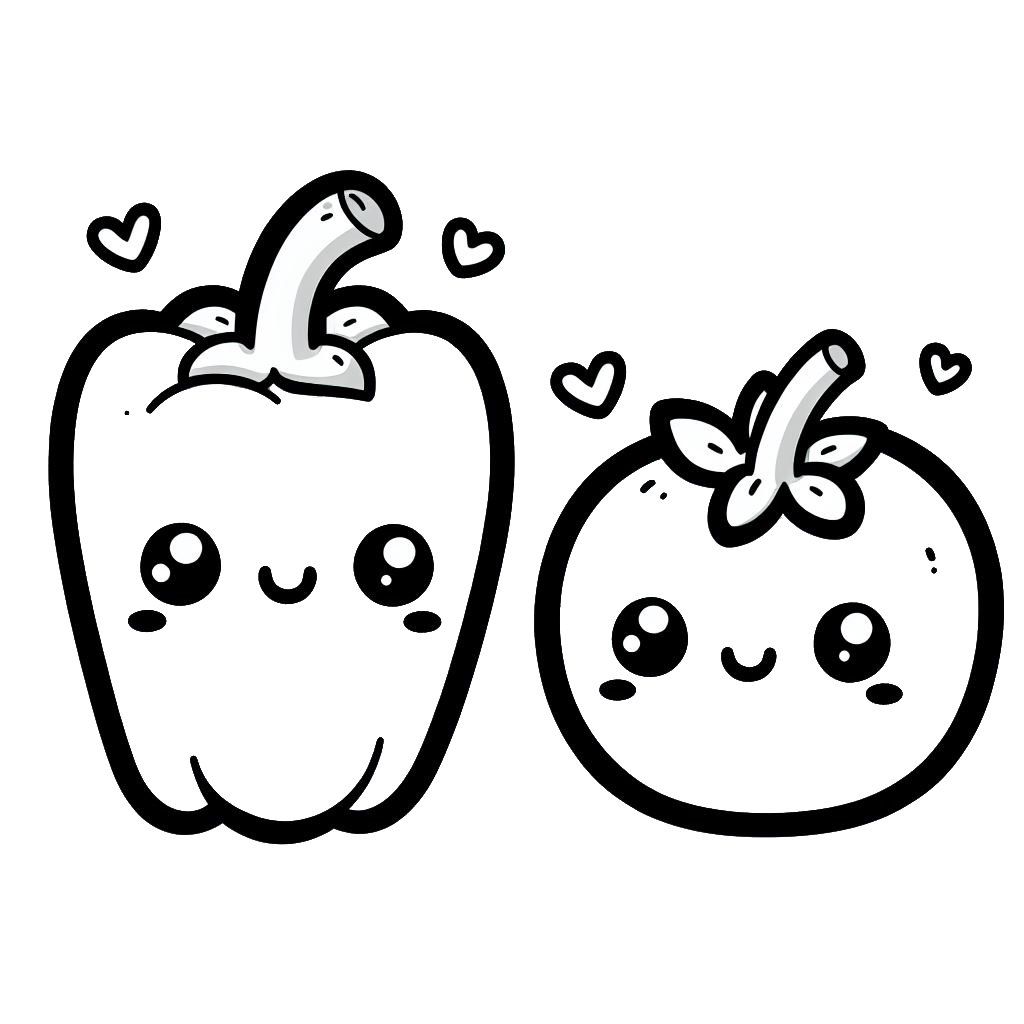דף צביעה תמונה של פלפל ועגבנייה חמודים לצביעה בחינם להדפסה או צביעה אונליין