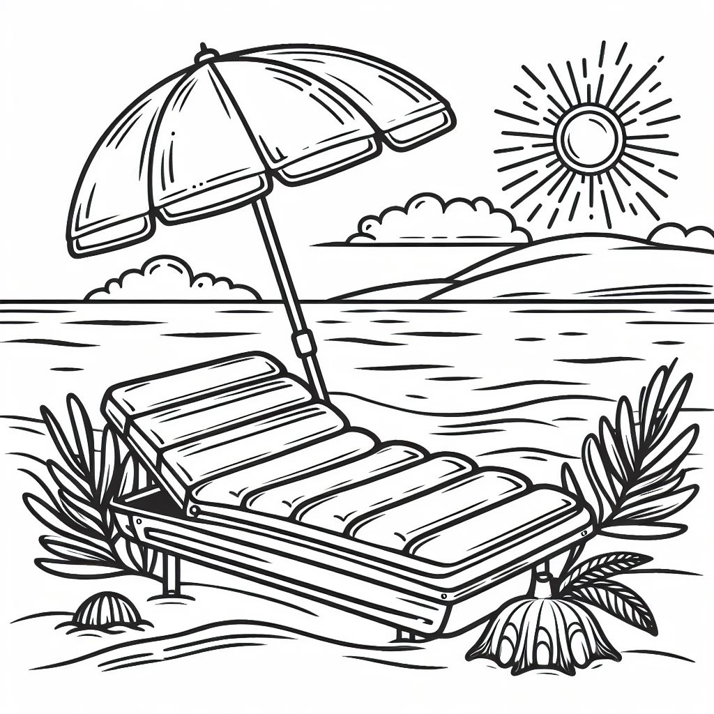דף צביעה תמונה של מיטת שיזוף בים לצביעה בחינם להדפסה או צביעה אונליין