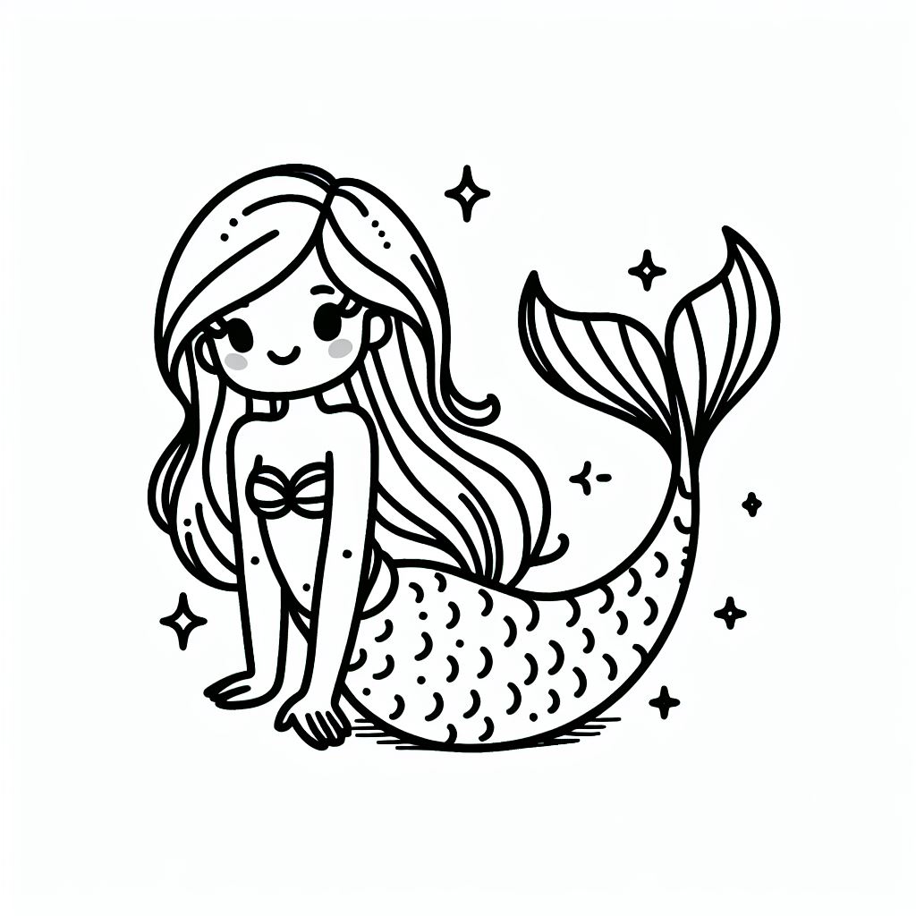 ציור של בת ים קטנה חמודה לצביעה, איור של בת ים קטנה חמודה להדפסה לצביעה לילדים