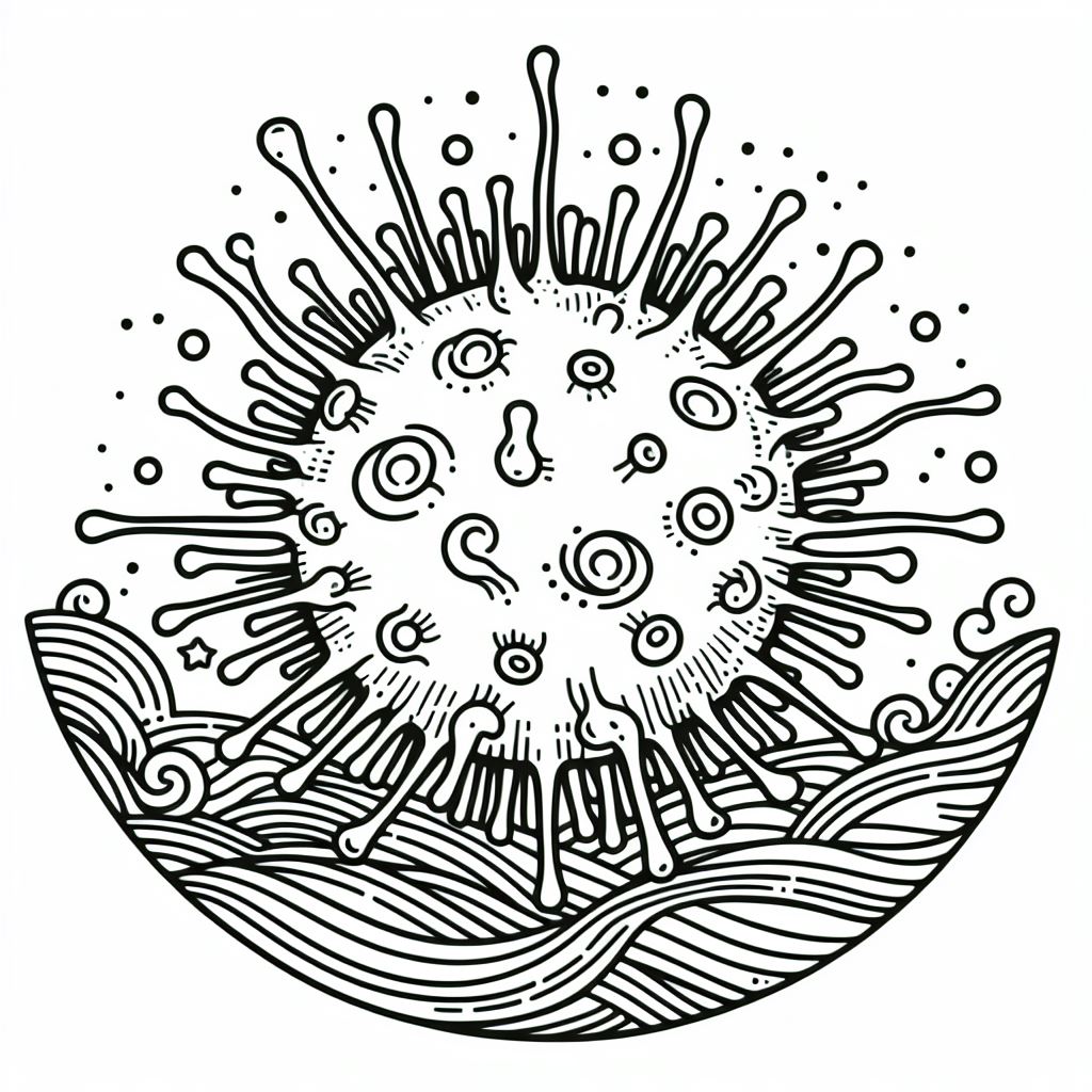 דף ציור של קורונה לצביעה , ציור של קורונה להדפסה לצביעה, מתאים לדף בגודל A4 להדפסה בחינם