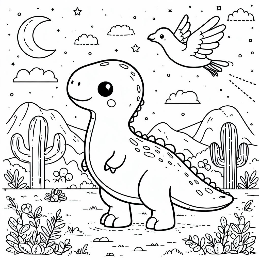 ציור של דינוזאור לצביעה, איור של דינוזאור להדפסה לצביעה לילדים