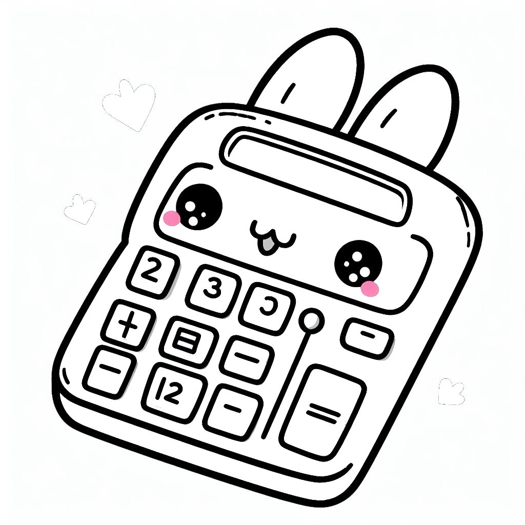 ציור של מחשבון חמוד לצביעה, איור של מחשבון חמוד להדפסה לצביעה לילדים