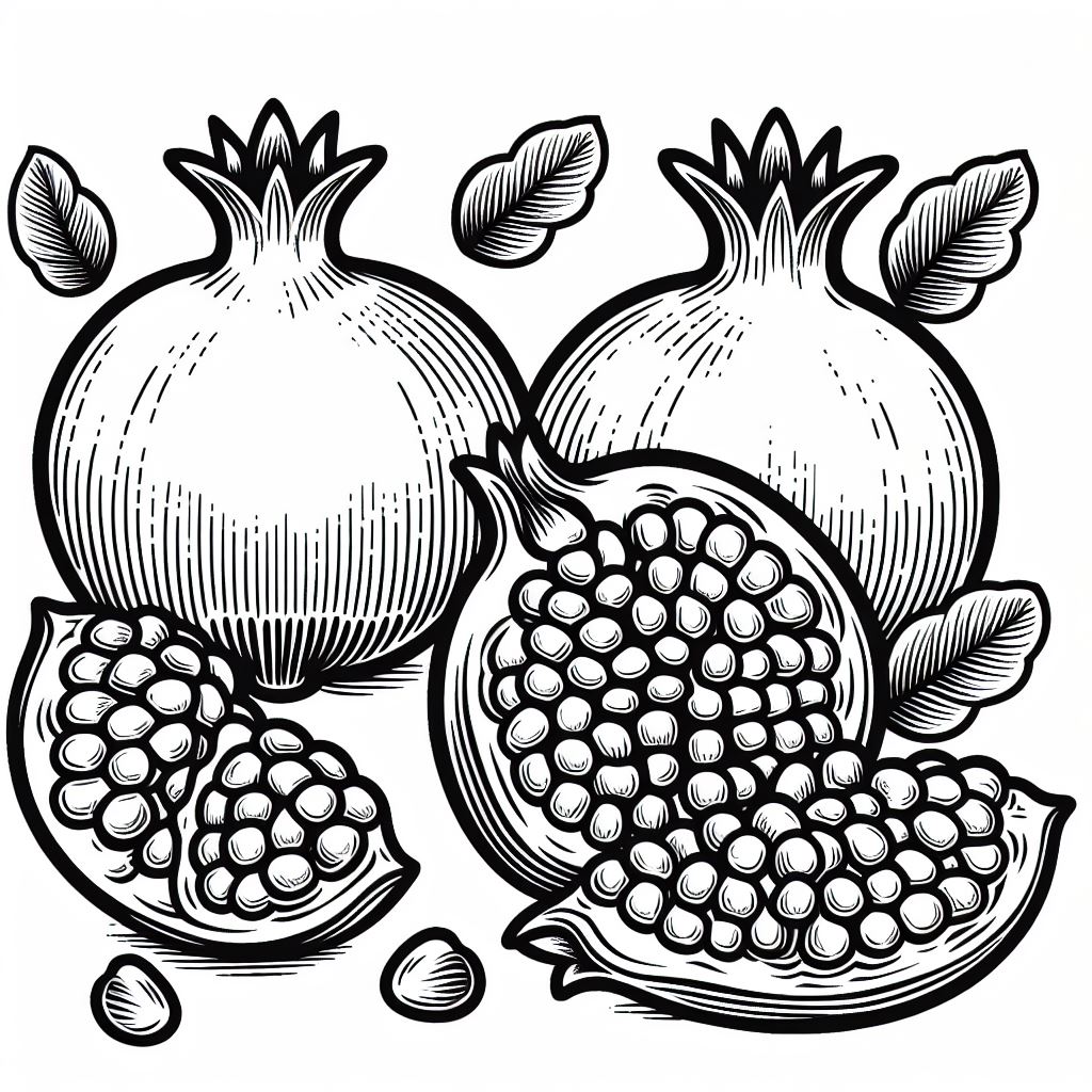 ציור של רימונים לצביעה, איור של רימונים להדפסה לצביעה לילדים