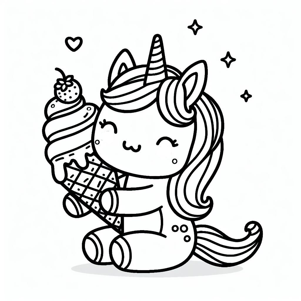 דף צביעה תמונה של חד קרן עם גלידה לצביעה בחינם להדפסה או צביעה אונליין