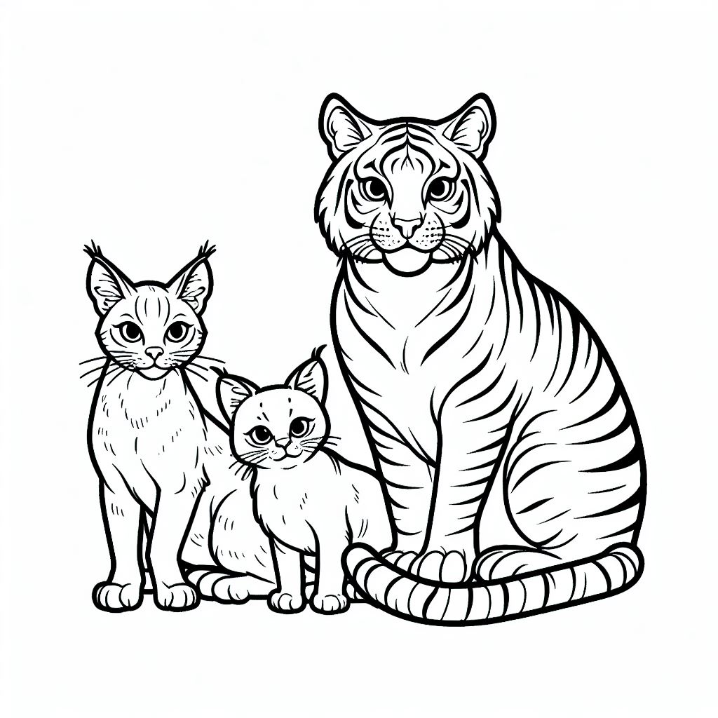 דף צביעה של משפחת החתוליים להדפסה או להורדה בחינם, למחשב או לטלפון (אפשר להדפיס גם מהטלפון)