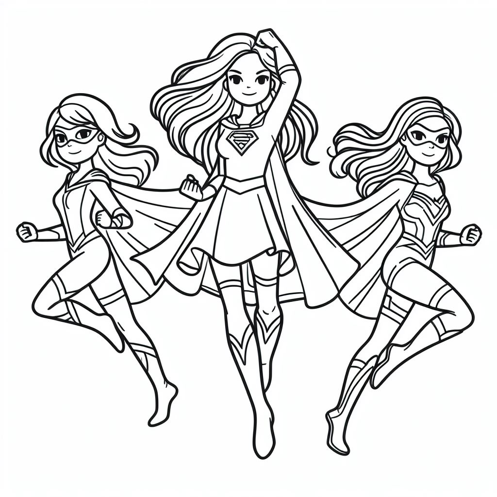 דף צביעה להדפסה או להורדה חינם של גיבורות על