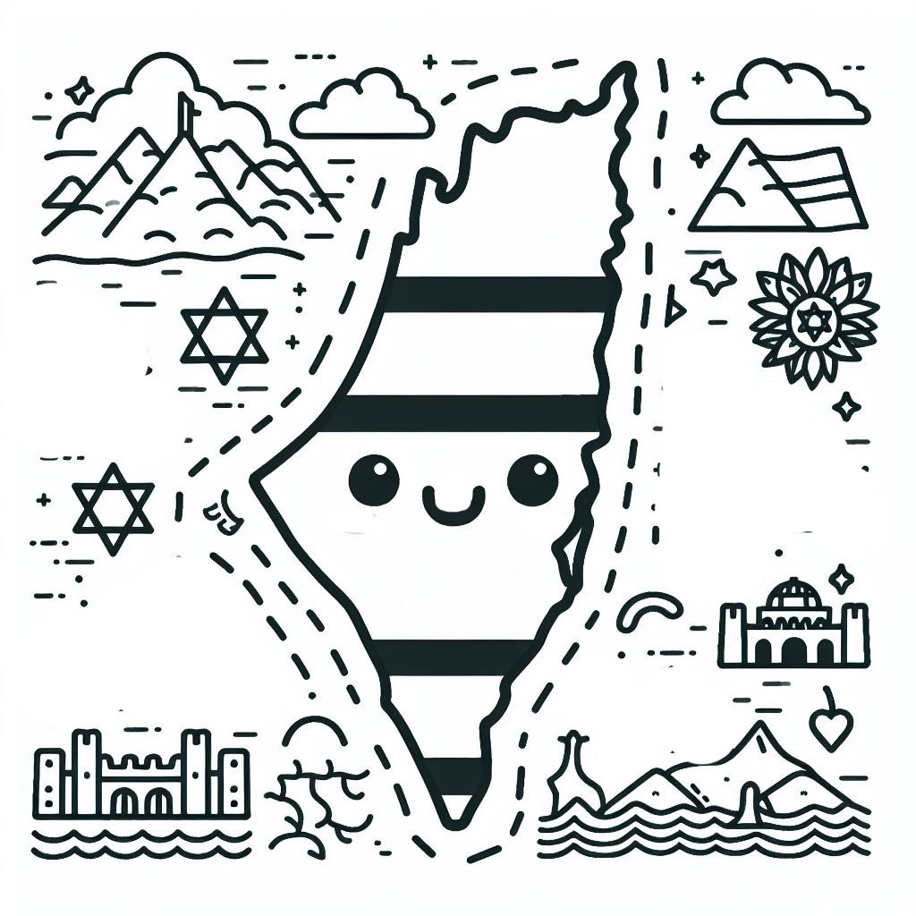 דף צביעה תמונה של מפת ארץ ישראל לילדים לצביעה בחינם להדפסה או צביעה אונליין