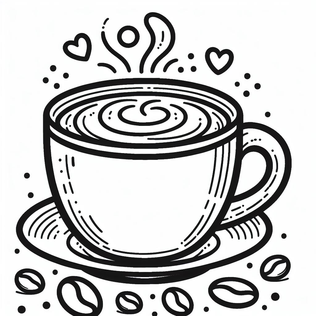 דף צביעה להדפסה או להורדה חינם של ספל קפה ציור