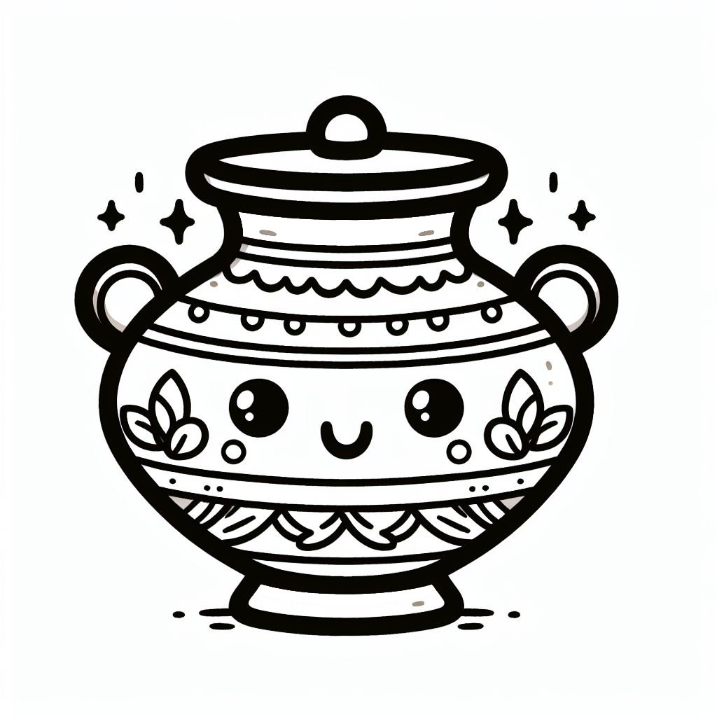 ציור של כד חמוד לצביעה, איור של כד חמוד להדפסה לצביעה לילדים