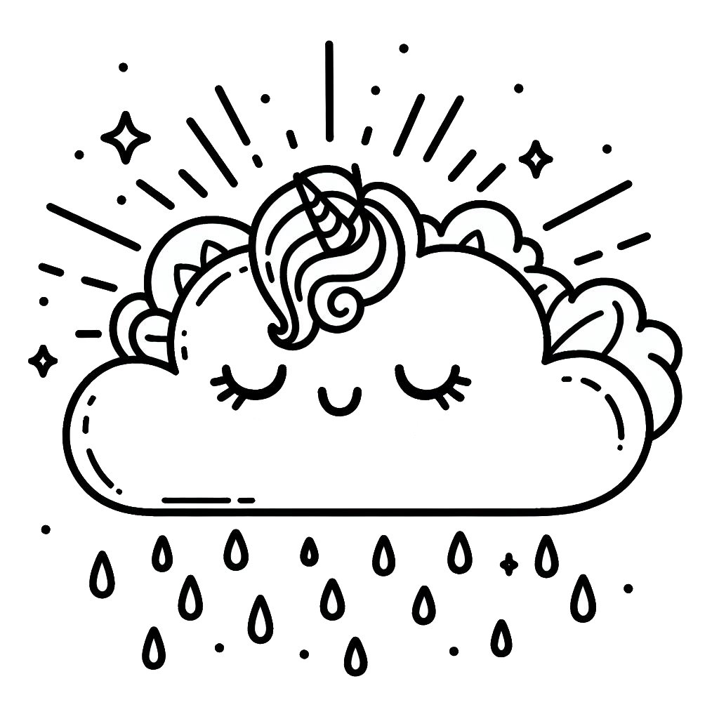 דף צביעה להדפסה או להורדה חינם של חד קרן בענן