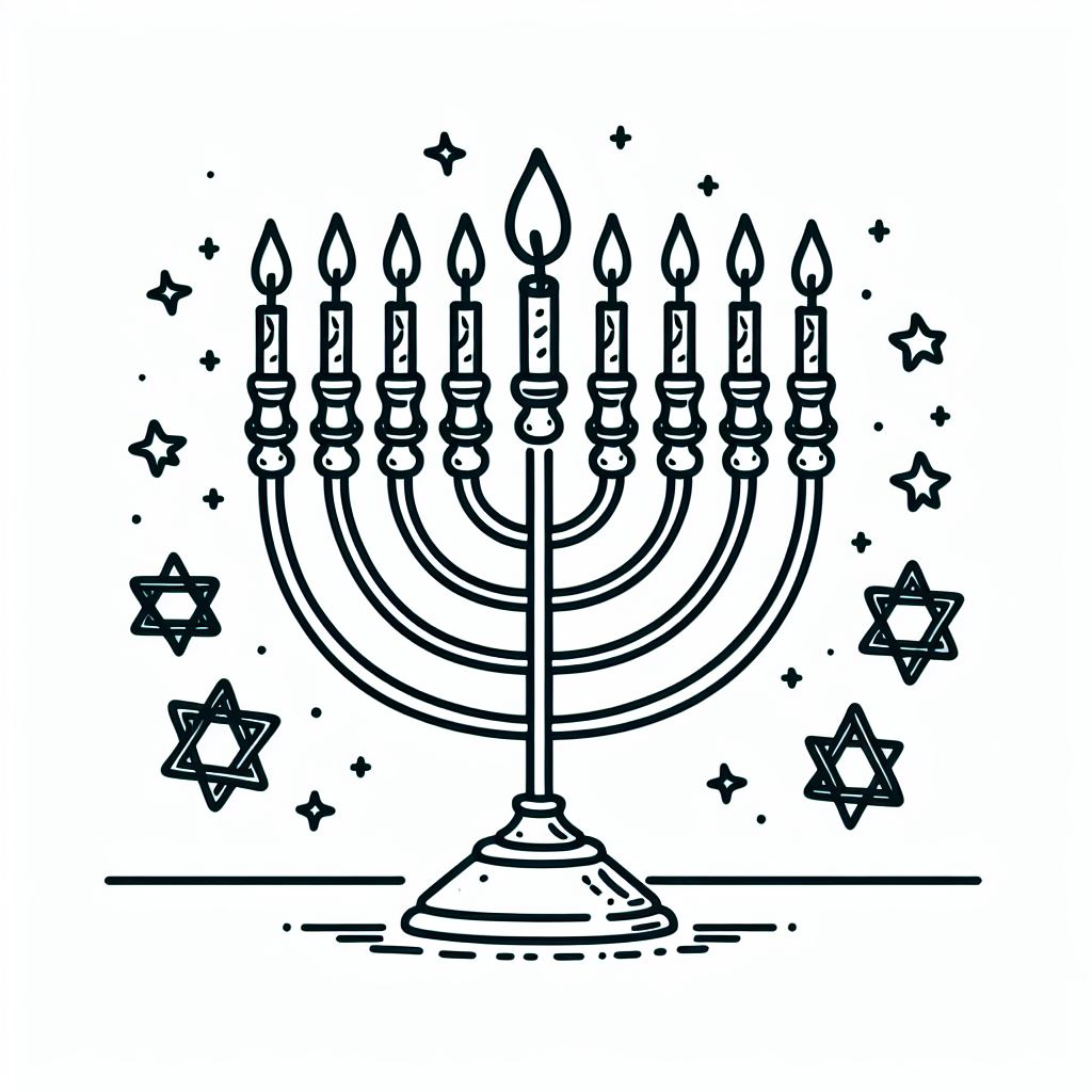 ציור של חנוכיה להדפסה לצביעה, איור של חנוכיה להדפסה להדפסה לצביעה לילדים