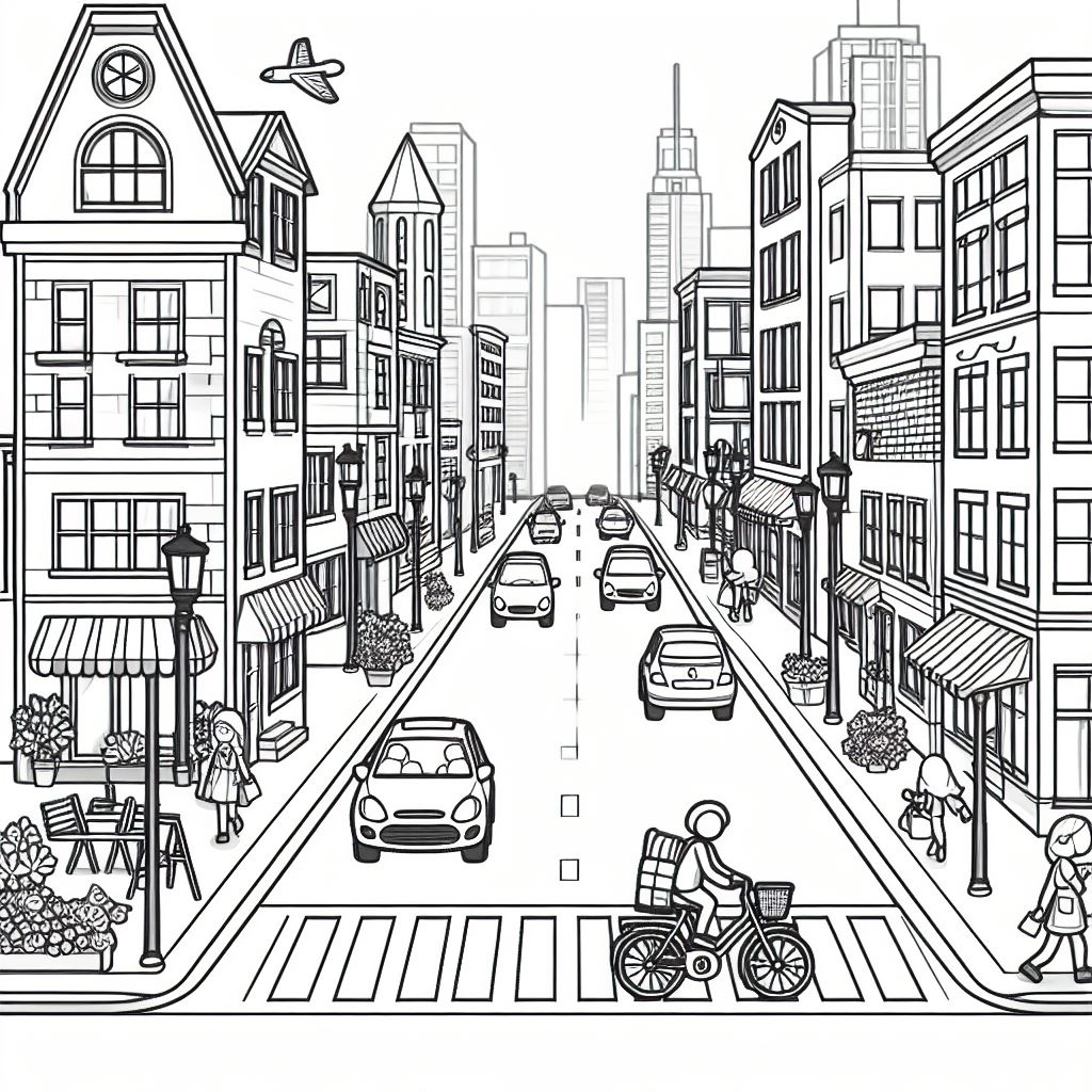 דף צביעה של רחוב - דף צביעה של רחוב להדפסה, ציור של רחוב לצביעה בחינם