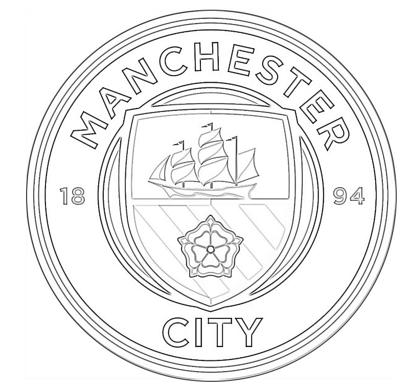 תמונה של סמל מנצסטר סיטי בשחור לבן להדפסה בחינם. דף עבודה לצביעה של סמל מנצסטר סיטי להורדה או שמירה במחשב.
