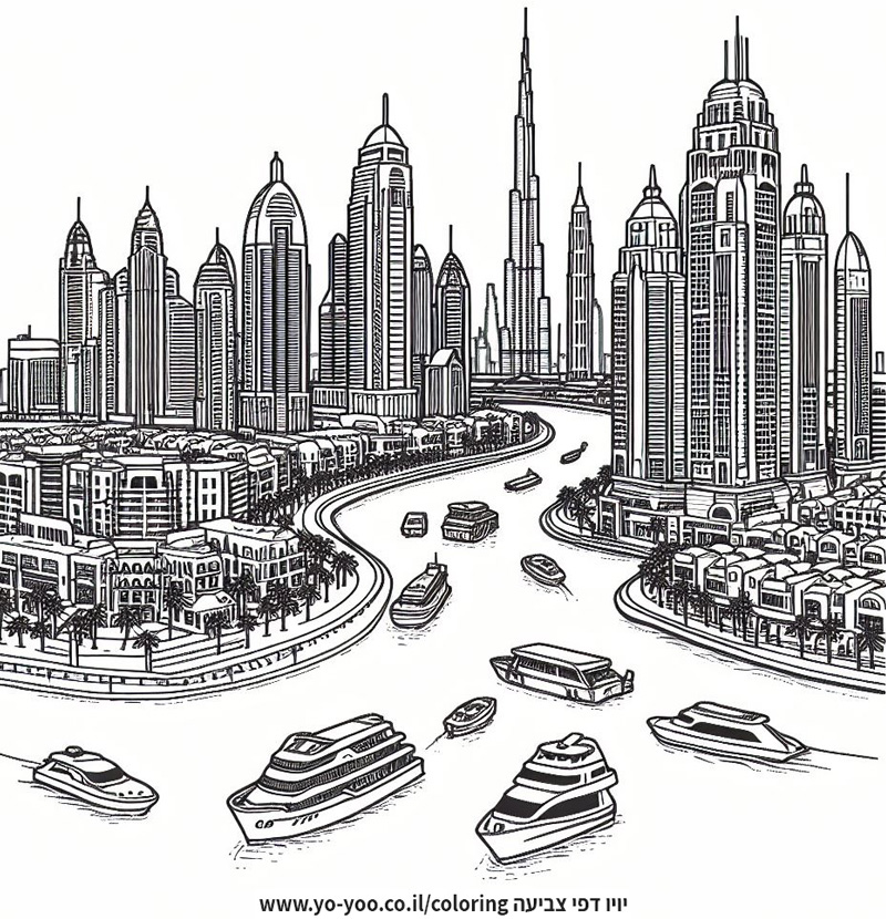 דף צביעה של דובאי להדפסה או להורדה בחינם, למחשב או לטלפון (אפשר להדפיס גם מהטלפון)