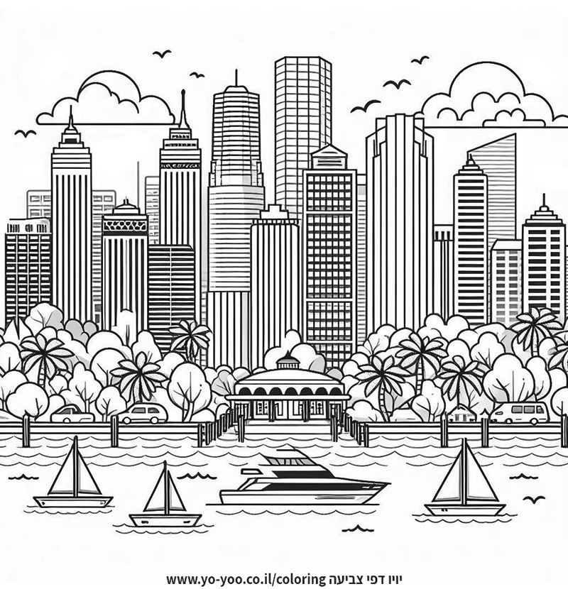 ציור של מיאמי לצביעה, איור של מיאמי להדפסה לצביעה לילדים