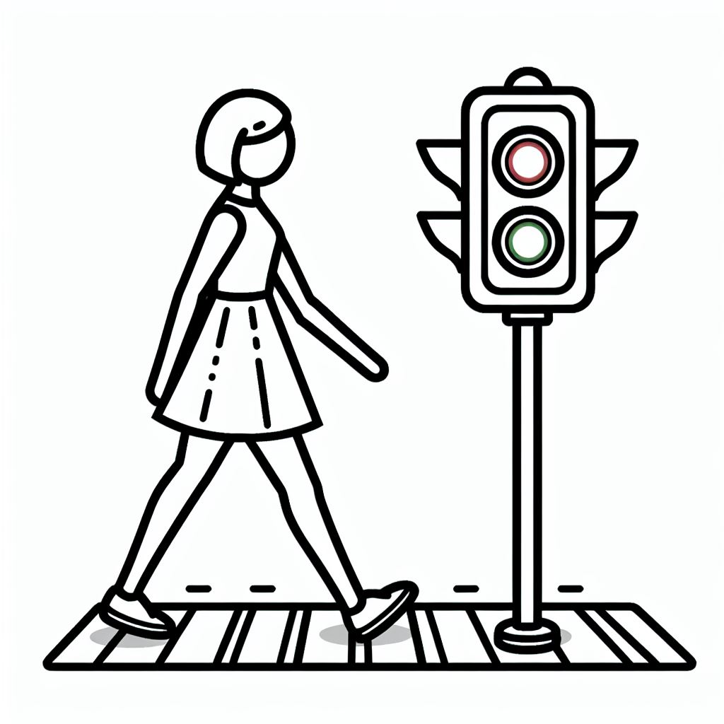 דף צביעה תמונה של מעבר חציה ותמרור לצביעה בחינם להדפסה או צביעה אונליין