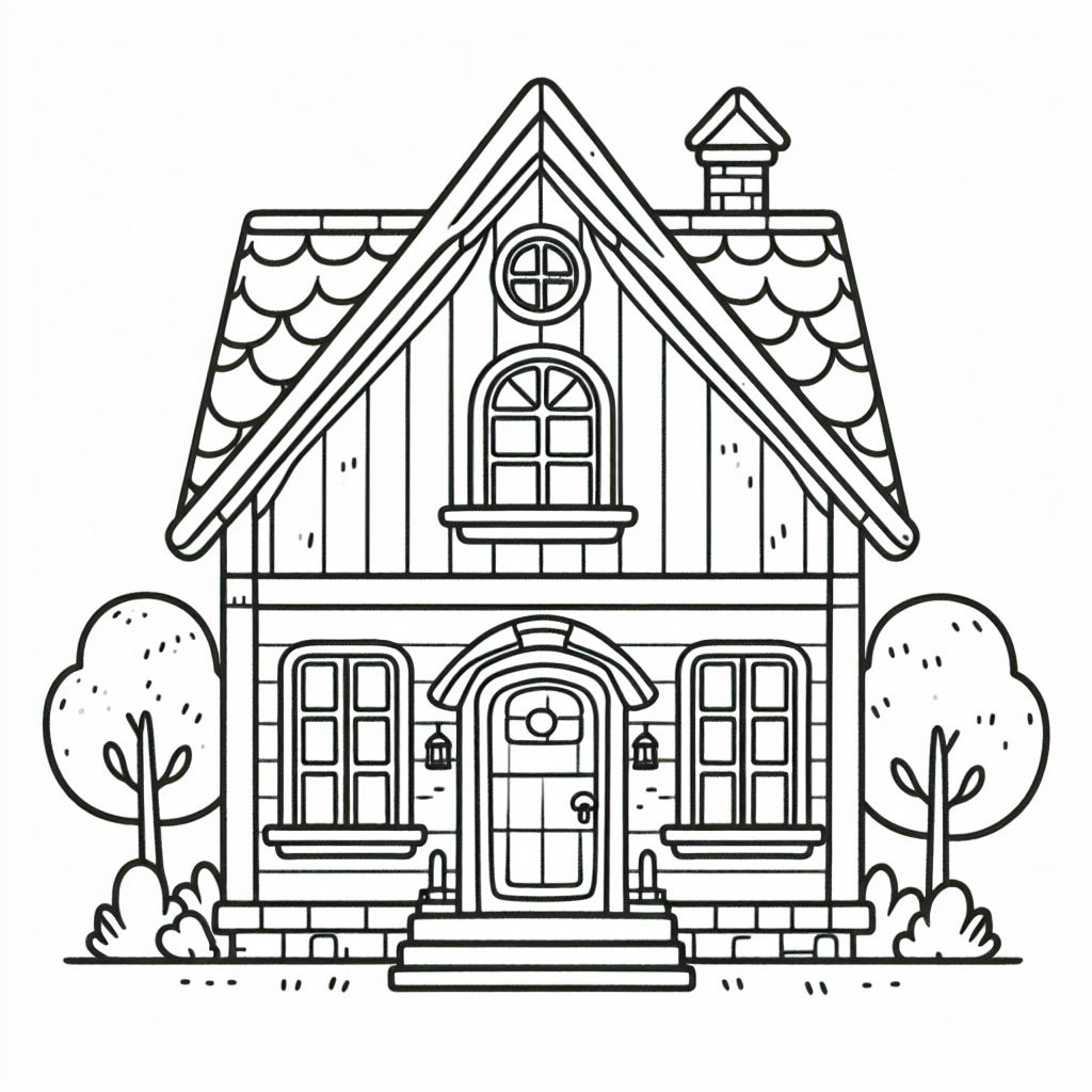 ציור של ציור של בית לצביעה, איור של ציור של בית להדפסה לצביעה לילדים