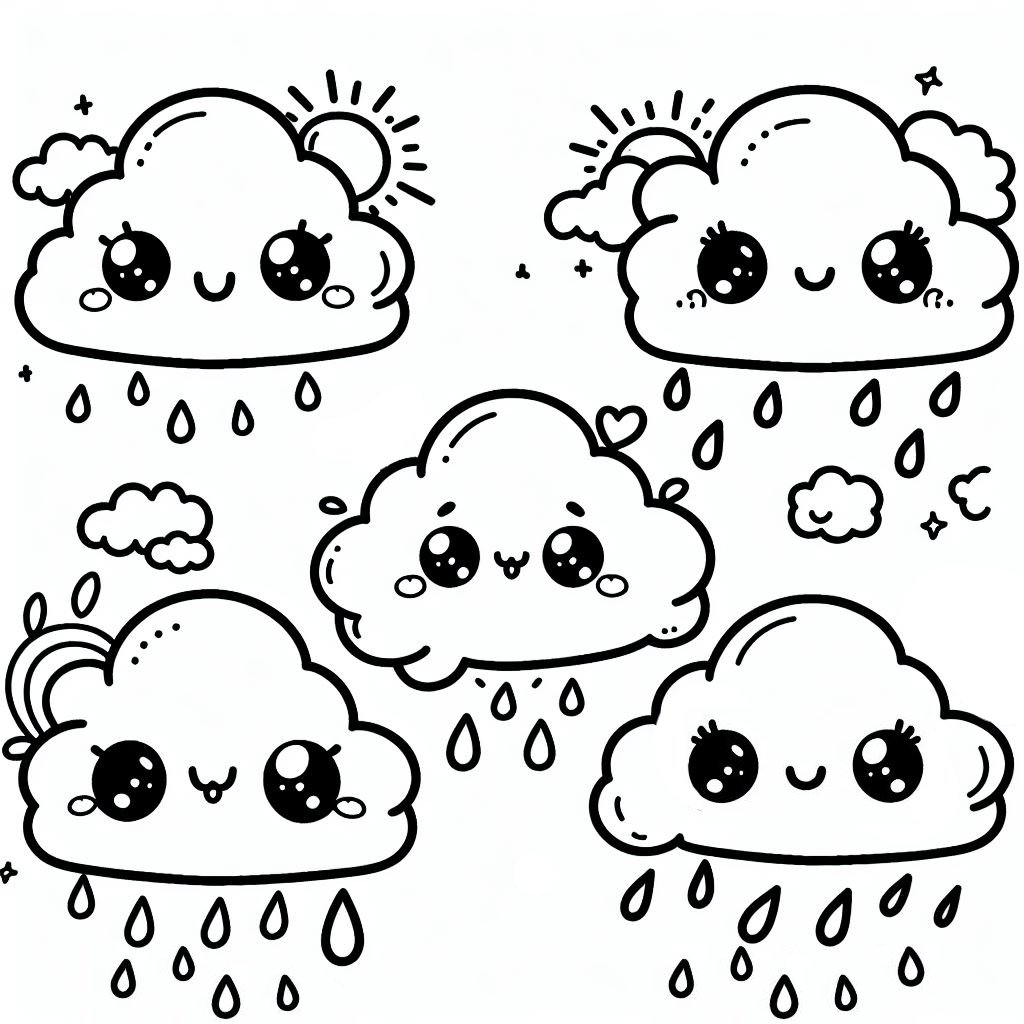 דף צביעה של ענני גשם להדפסה או להורדה בחינם, למחשב או לטלפון (אפשר להדפיס גם מהטלפון) ציור של ענני גשם לצביעה, איור של ענני גשם להדפסה לצביעה לילדים
