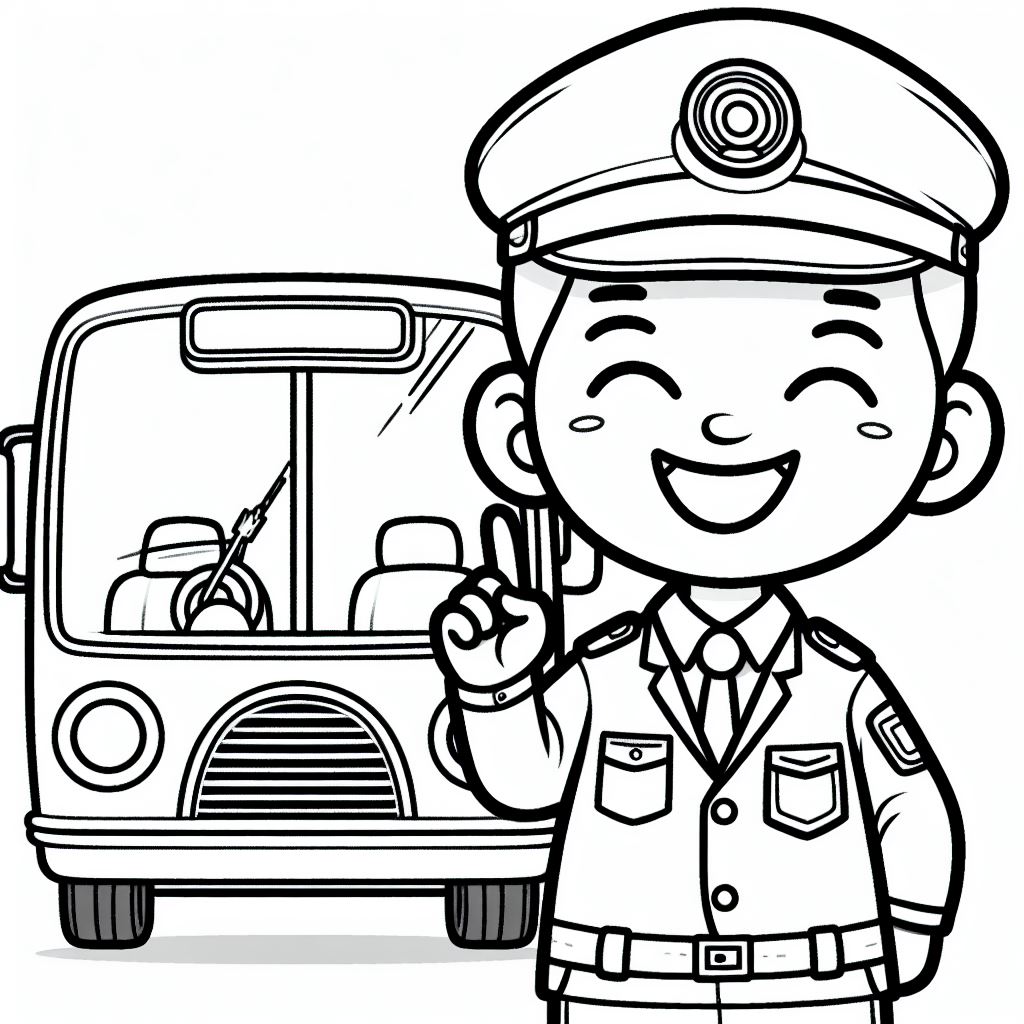ציור של נהג אוטובוס לצביעה, איור של נהג אוטובוס להדפסה לצביעה לילדים