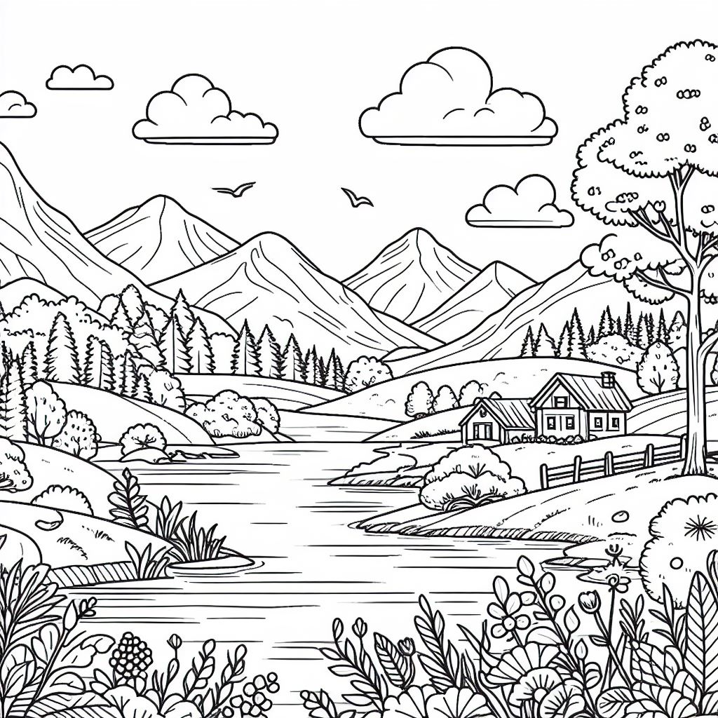 דף צביעה תמונה של דף צביעה של נחל בטבע בחינם להדפסה או צביעה אונליין