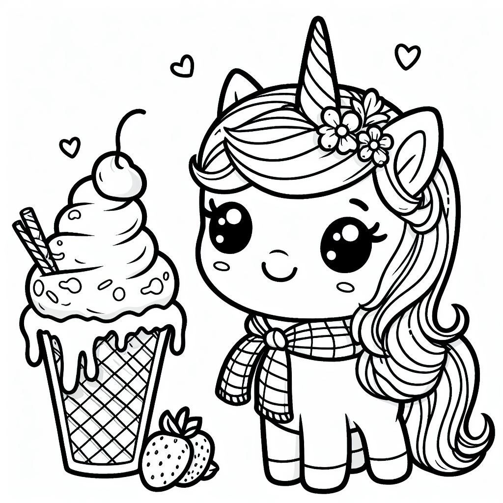 דף צביעה תמונה של חד קרן אוכל גלידה לצביעה בחינם להדפסה או צביעה אונליין