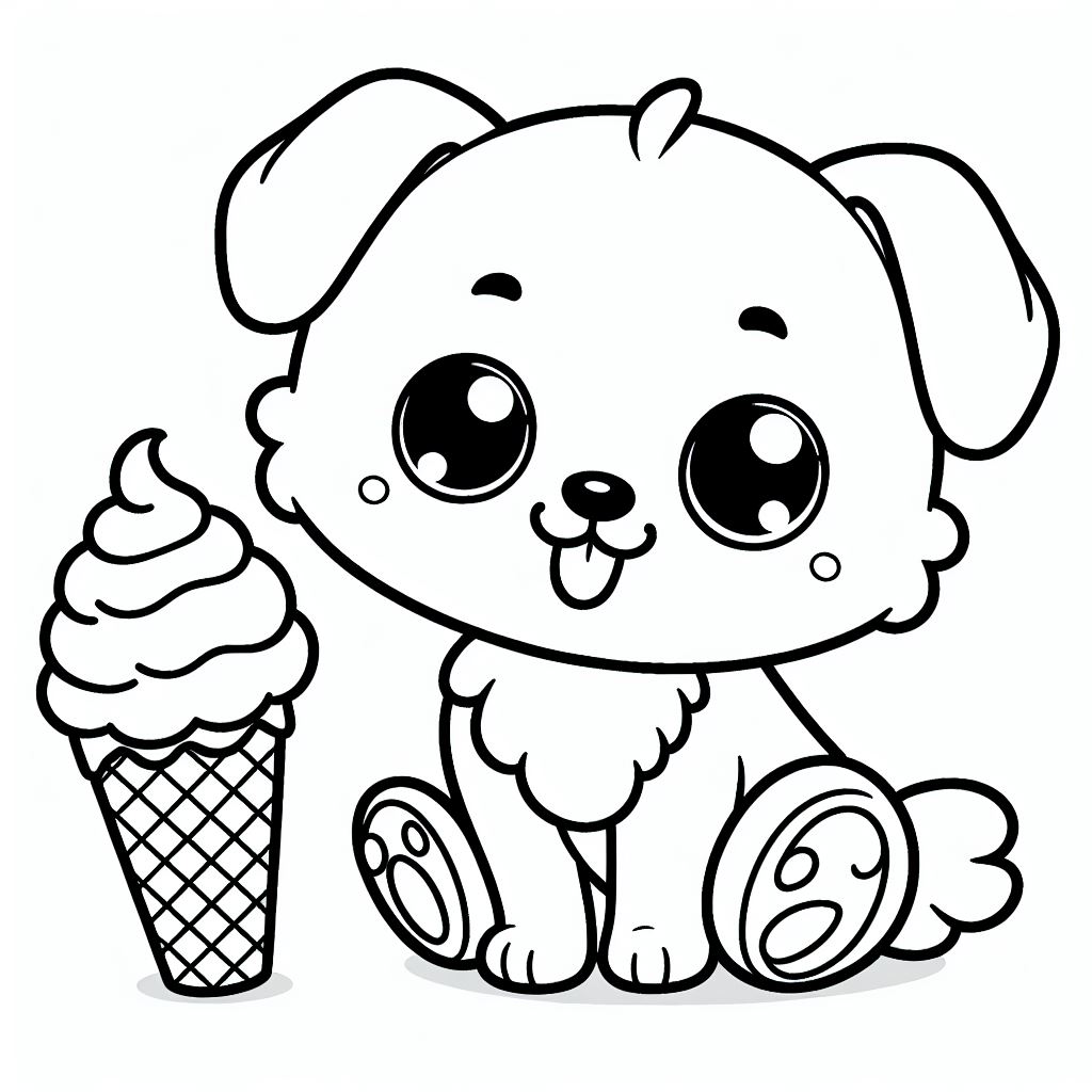ציור של כלב עם גלידה לצביעה, איור של כלב עם גלידה להדפסה לצביעה לילדים
