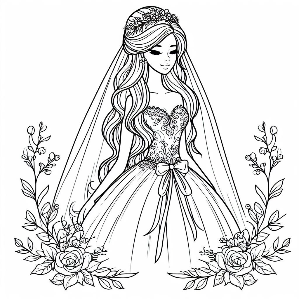 דף צביעה של כלה מגניבה להדפסה בחינם