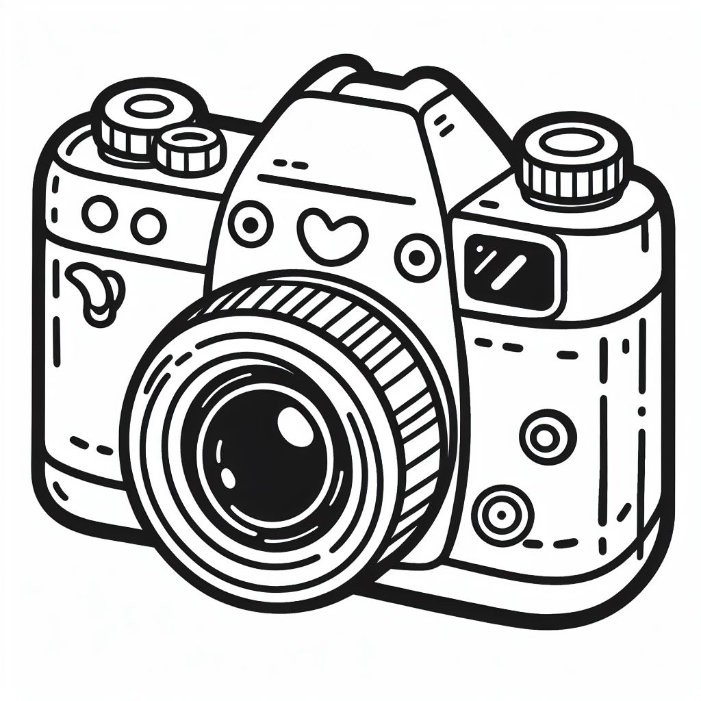 דף צביעה של מצלמה - דף צביעה של מצלמה להדפסה, ציור של מצלמה לצביעה בחינם