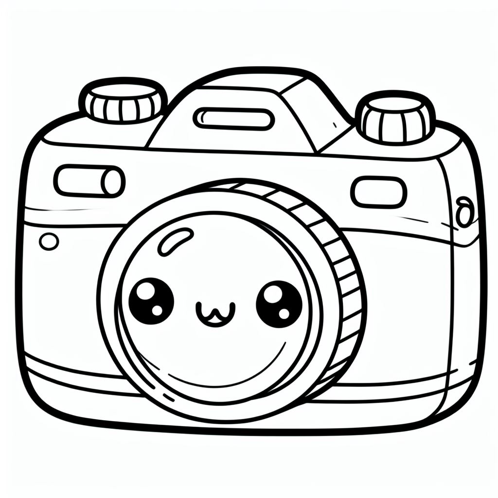דף צביעה של מצלמה חמודה - דף צביעה של מצלמה חמודה להדפסה, ציור של מצלמה חמודה לצביעה בחינם