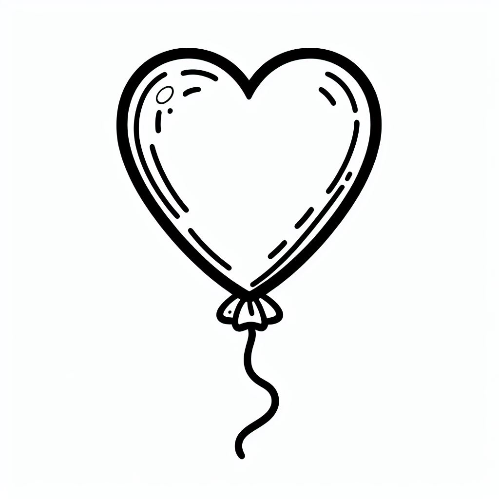 תמונה של בלון לב בשחור לבן להדפסה בחינם. דף עבודה לצביעה של בלון לב להורדה או שמירה במחשב.