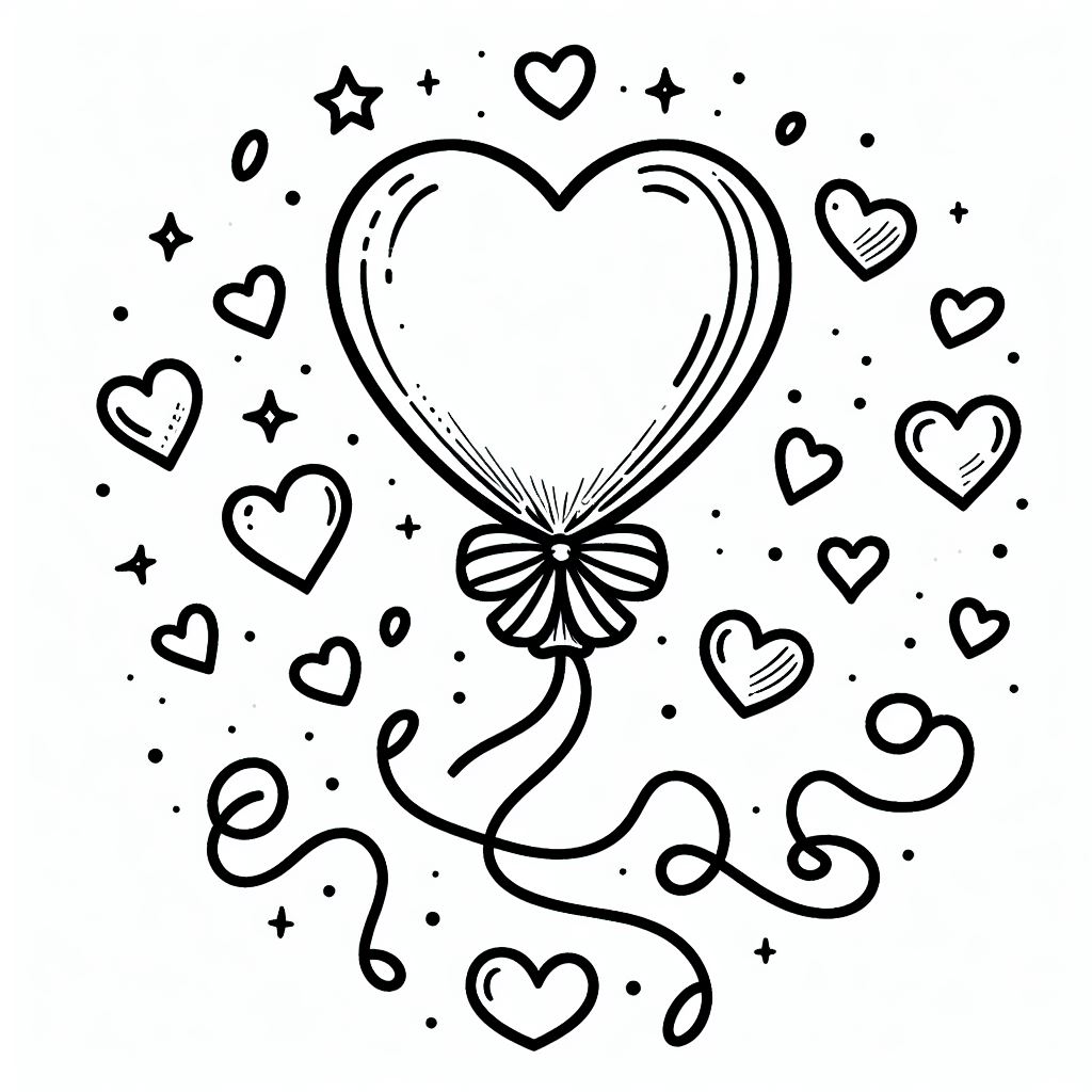 דף צביעה להדפסה או להורדה חינם של בלון לב