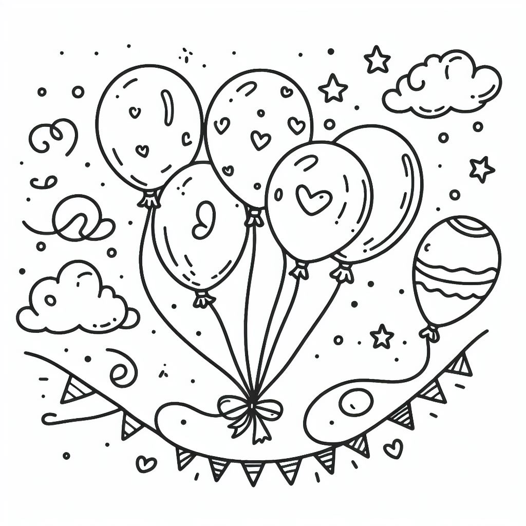 בלונים יפים לצביעה - דף צביעה של בלונים יפים להדפסה, ציור של בלונים יפים לצביעה בחינם