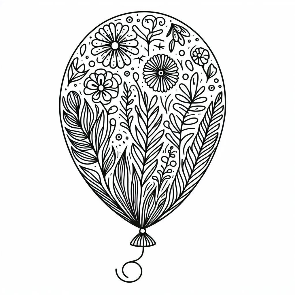 דף צביעה להדפסה או להורדה חינם של מנדלה בלון פרח