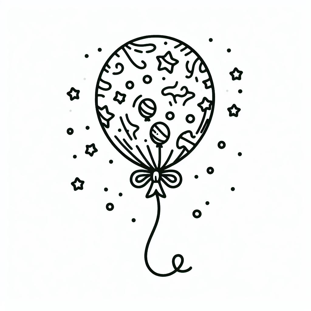ציור של בלון עם כוכבים לצביעה, איור של בלון עם כוכבים להדפסה לצביעה לילדים